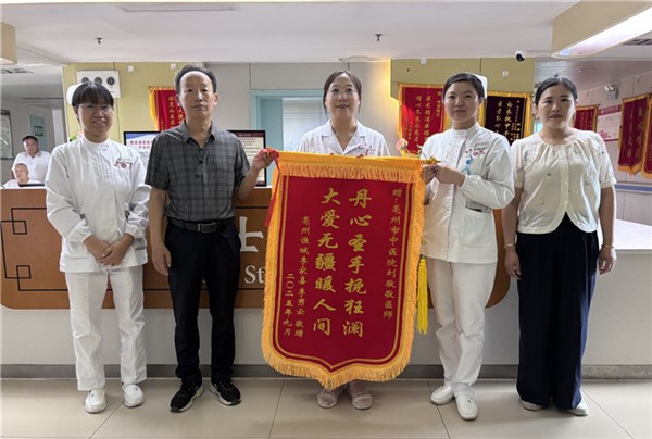 “多谢刘医生的及时救治,让我们在高铁上最惊慌失措的时候,得到了及时的帮助。”9月10日,市民李女士家人带着一面写有“大爱无疆暖人间 丹心圣手挽狂澜”的锦旗来到亳州市中医院,向该院医生刘敬敬表示感谢。