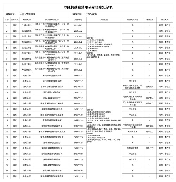 2025年亳州市公共场所和生活饮用水双随机检查情况
