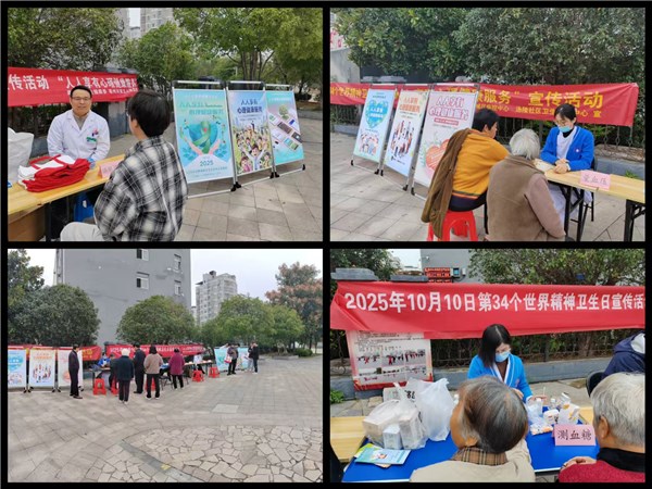 2025年10月10日是第34个世界精神卫生日,今年的主题为“人人享有心理健康服务”,当日上午亳州市第五人民医院组织专业技术人员在和谐佳苑小区广场举行了大型心理咨询宣传活动,为群众提供心理健康方面的专业咨询,普及心理健康知识;并呼吁全社会共同关注心理健康,促进社会和谐稳定。现场还发放了心理健康知识手册等宣传用品,为市民进行心理咨询、测量血压、血糖等义诊服务。